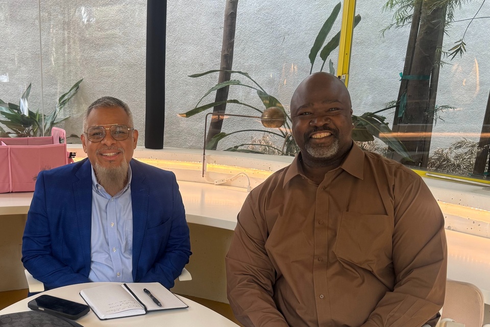 Photo: Jimmie Gilmer (right), a member of the first cohort of the Prison to Careers Equity Pathway Program, with The RightWay Foundation’s CEO Franco Vega during the foundation’s 3rd Annual Elevation Awards held last month. (Courtesy Jimmie Gilmer)